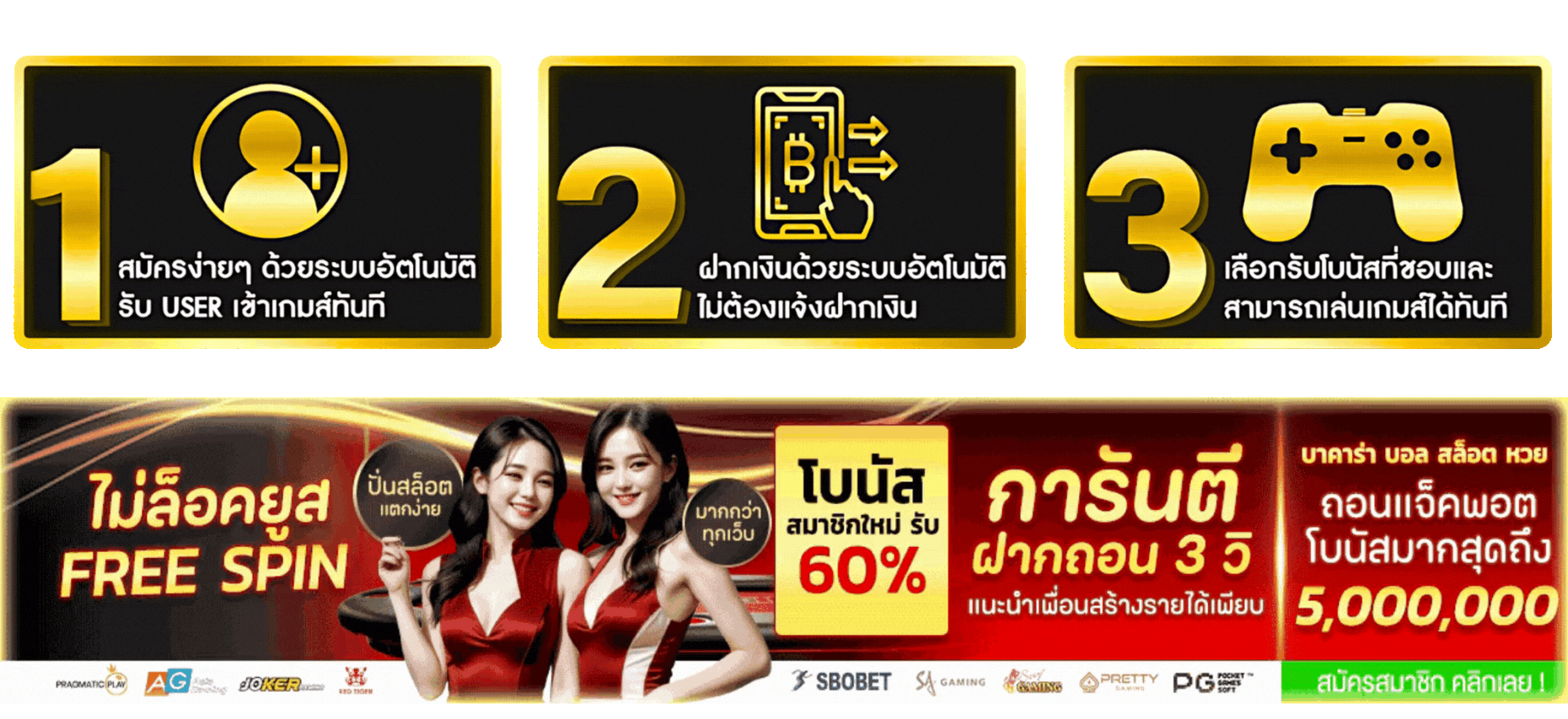 เริ่มต้นด้วยโบนัสต้อนรับสมาชิกใหม่ที่สุดคุ้ม เมื่อสมัครสมาชิกและทำการฝากเงินครั้งแรก คุณจะได้รับโบนัสสูงถึง 100% ของยอดฝาก ซึ่งสามารถนำไปใช้เล่นเกมต่างๆ ได้ทันที นอกจากนี้ยังมีโปรโมชั่นเครดิตฟรีที่แจกให้สมาชิกใหม่ทุกคน เพื่อให้ได้ทดลองเล่นและสัมผัสประสบการณ์เกมพนันออนไลน์อย่างเต็มรูปแบบ